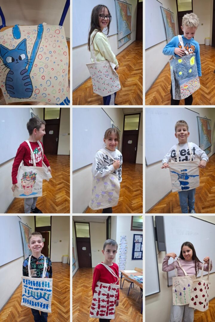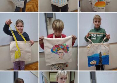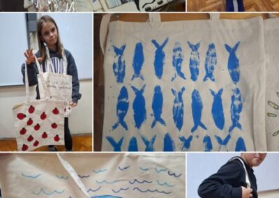 Posebno zanimljiv dio radionice bilo je korištenje pečata koje su učenici sami izradili od prikupljenih plastičnih čepova. Na taj su način iz primjera vidjeli kako se stari i naizgled neupotrebljivi predmeti mogu ponovno iskoristiti i dobiti novu svrhu, čime su dodatno osvijestili važnost recikliranja i očuvanja okoliša.